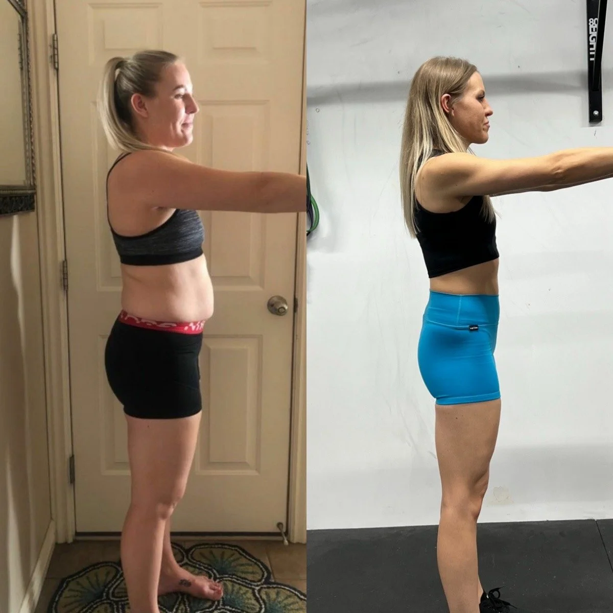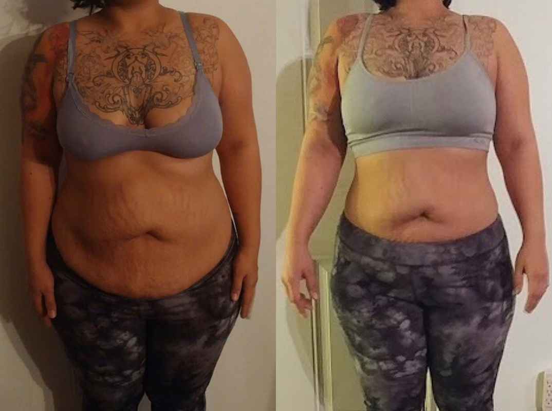 “Thanks to Jessica, I'm loving my body again! The transformation is 1 month apart and im estatic! Im weighing the same weight as when i started and still was able to lose a couple inches off my waist!! My journey with her has been nothing but life changing in just a short amount of time, If anyone is looking to start on their own fitness journey I truly cannot recommend her enough!